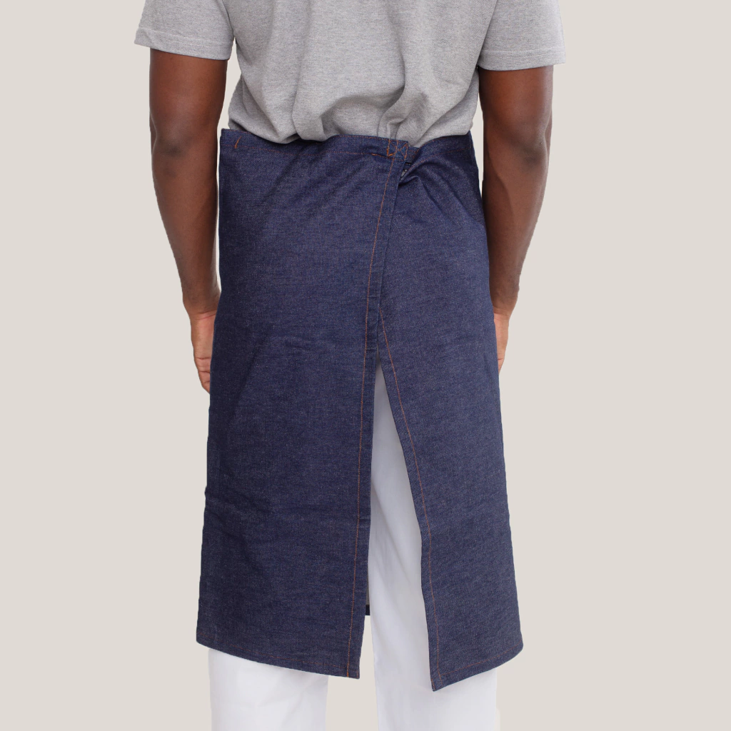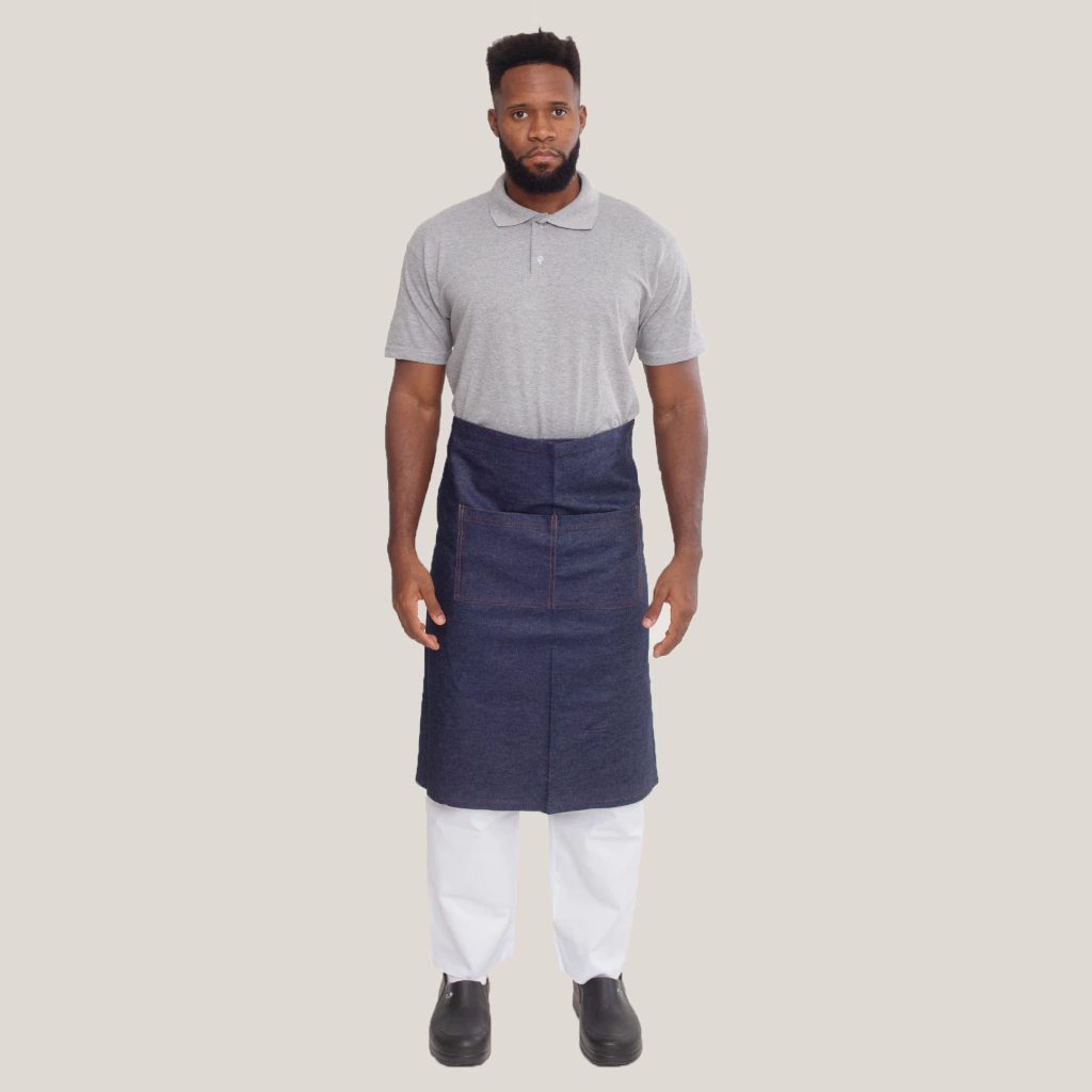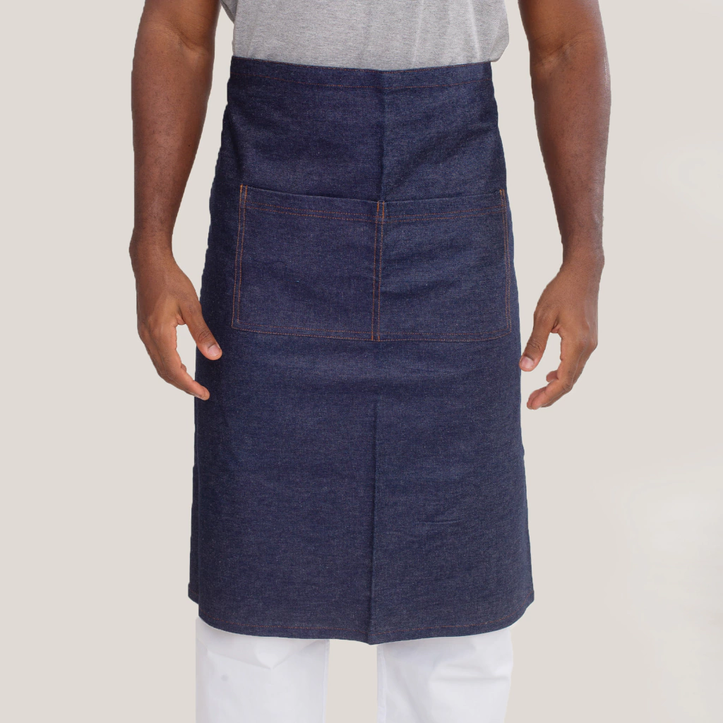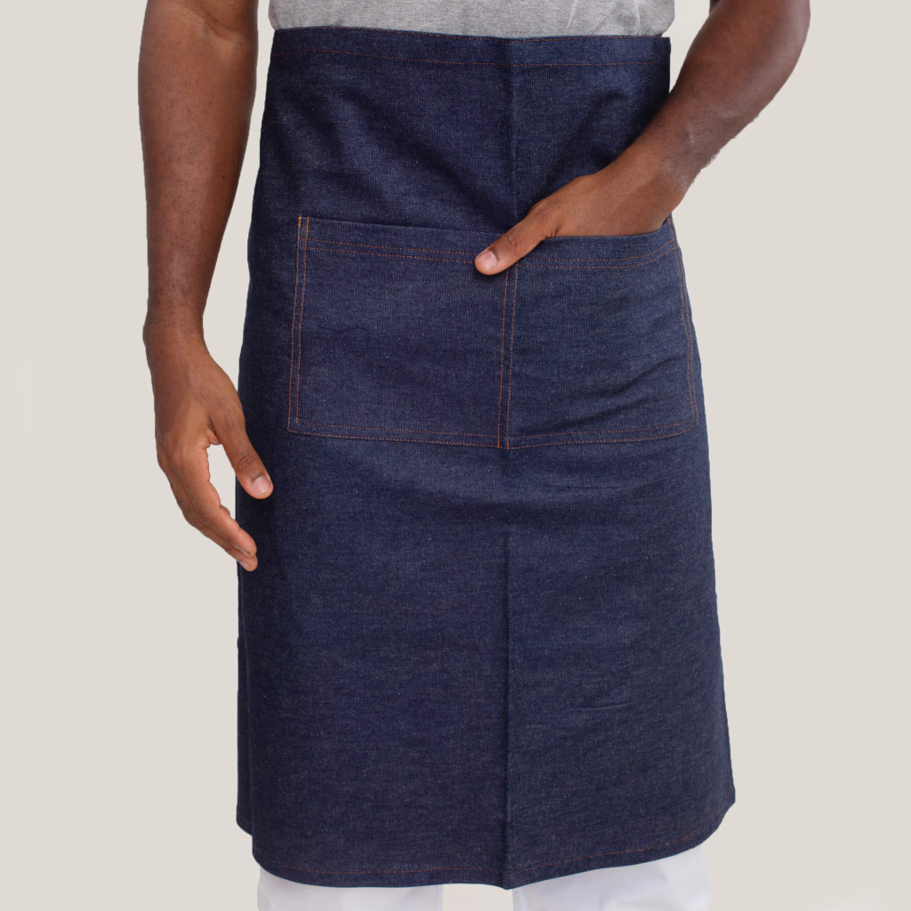 Avental Jeans azul unissex de cintura. Possui bolsos, ideal para balconistas, garçons, atendentes e até para cozinha. Um avental sofisticado e de qualidade.