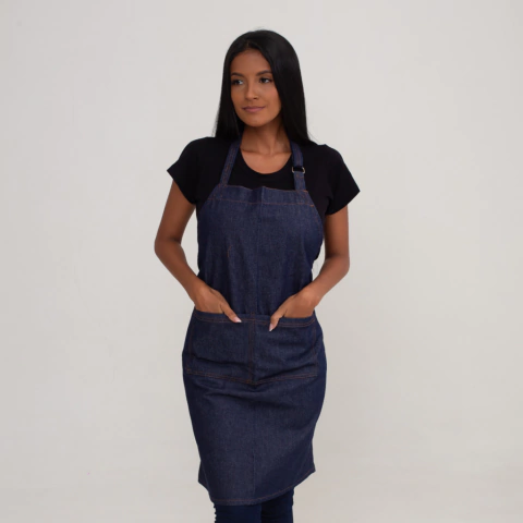 O avental de peito jeans é a combinação perfeita entre conforto e estilo.
