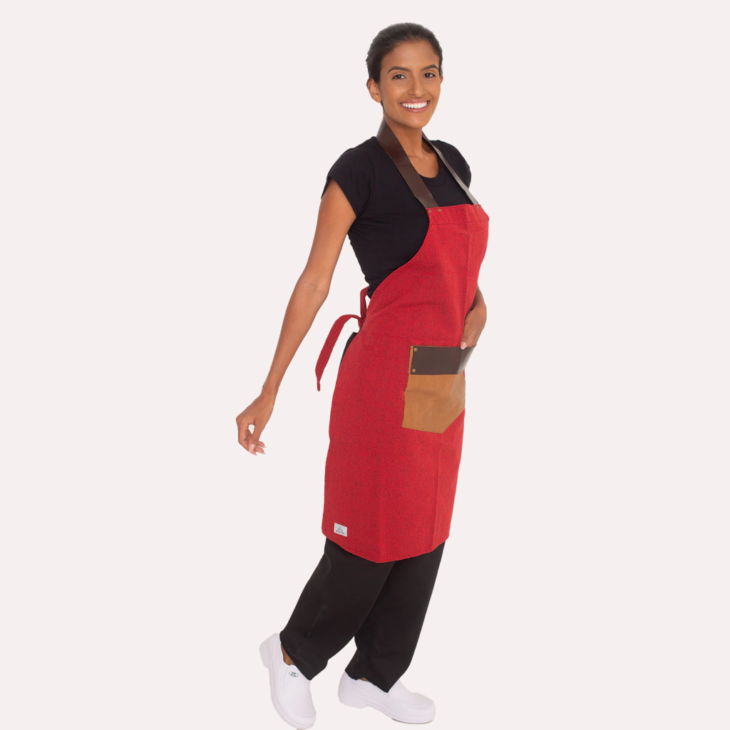 Feito de lona resistente, este avental é ideal para chefs e amantes da cozinha que buscam durabilidade e proteção. O bolso de couro não apenas acrescenta um toque sofisticado, mas também oferece praticidade, permitindo que você tenha sua boneca à mão enquanto cozinha.