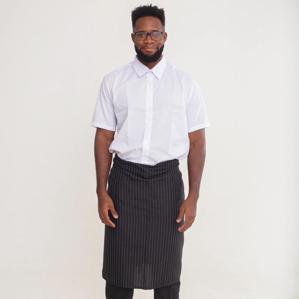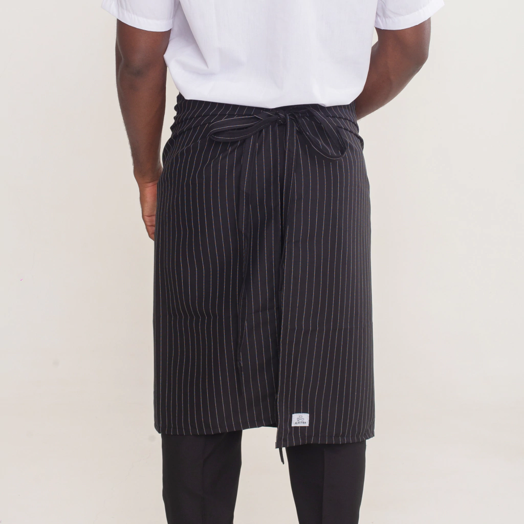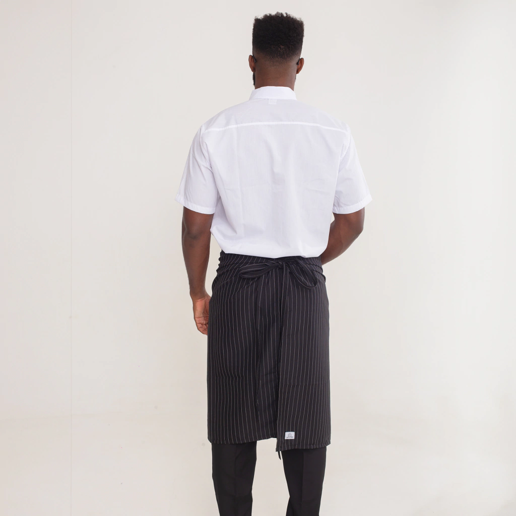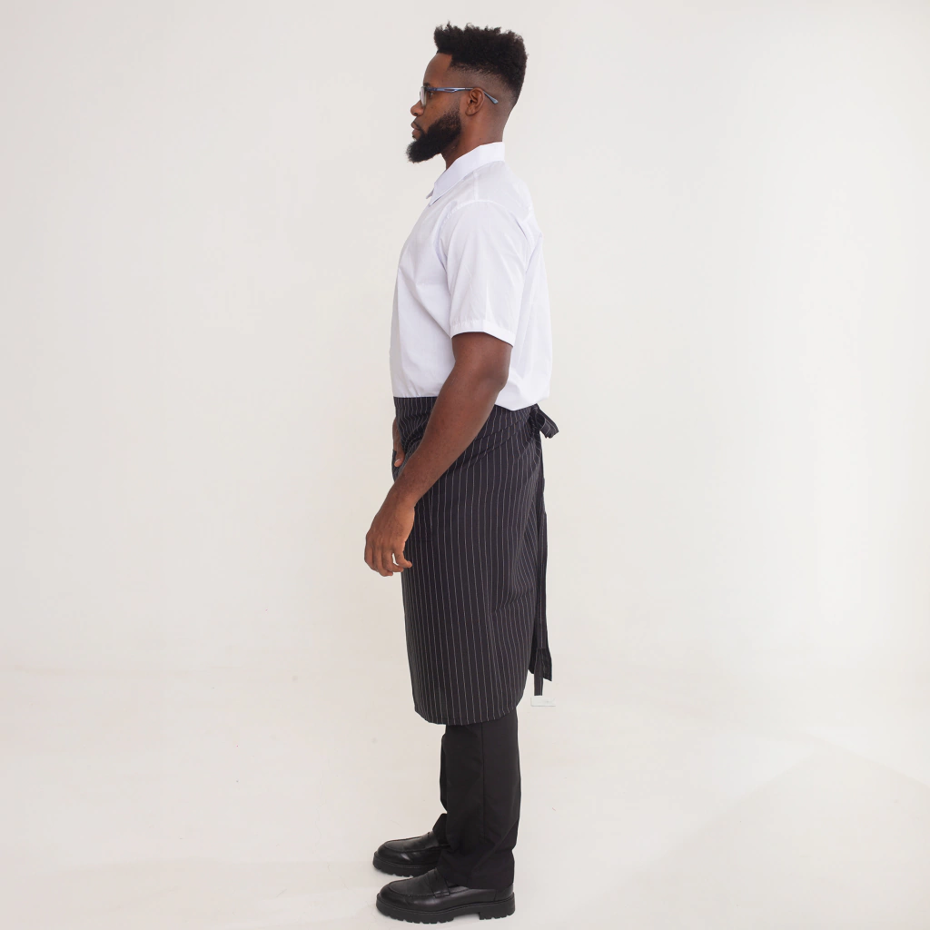 Avental Risca de Giz Preto De Cintura Transpassado com Bolso Oxford