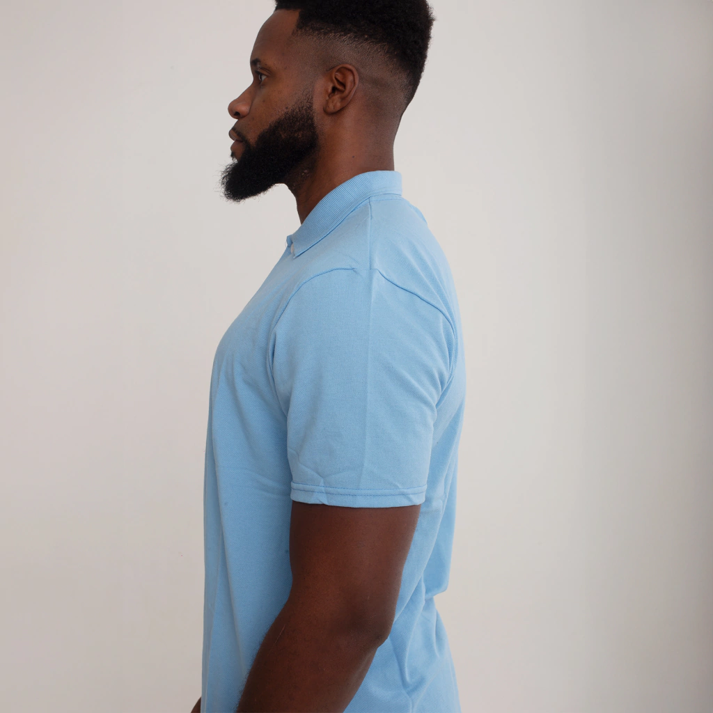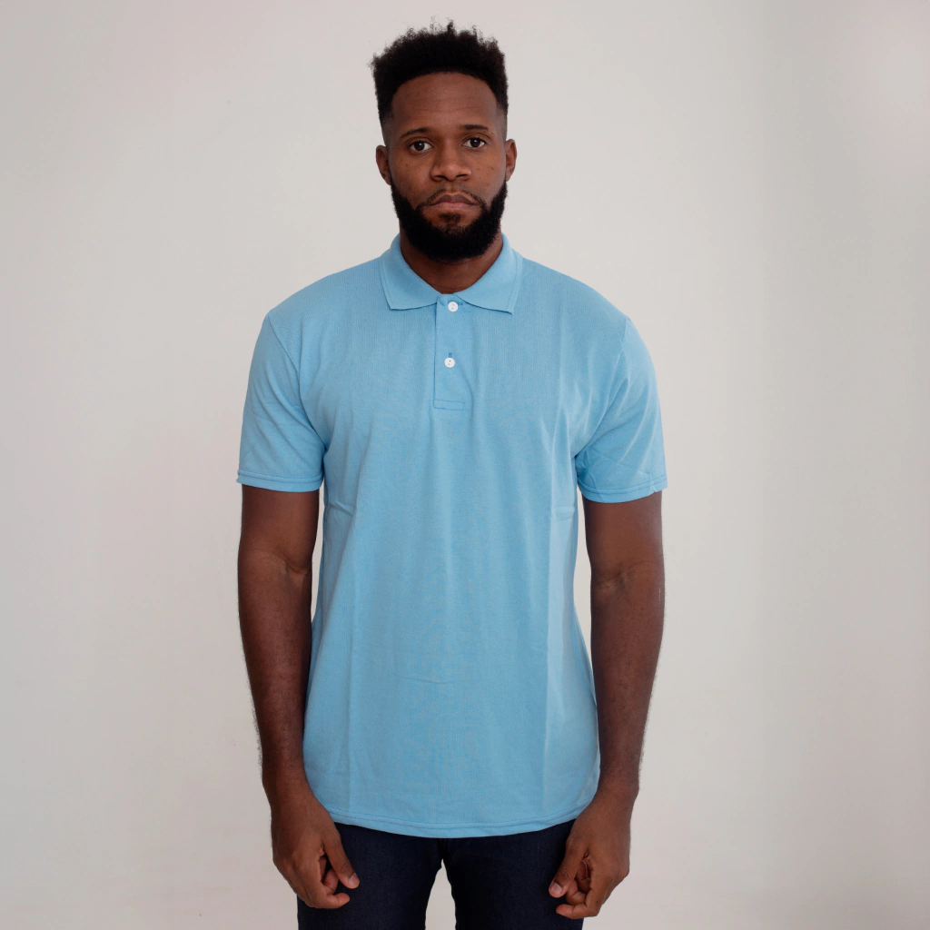 Camisa Polo Piquet Algodão Azul Claro
