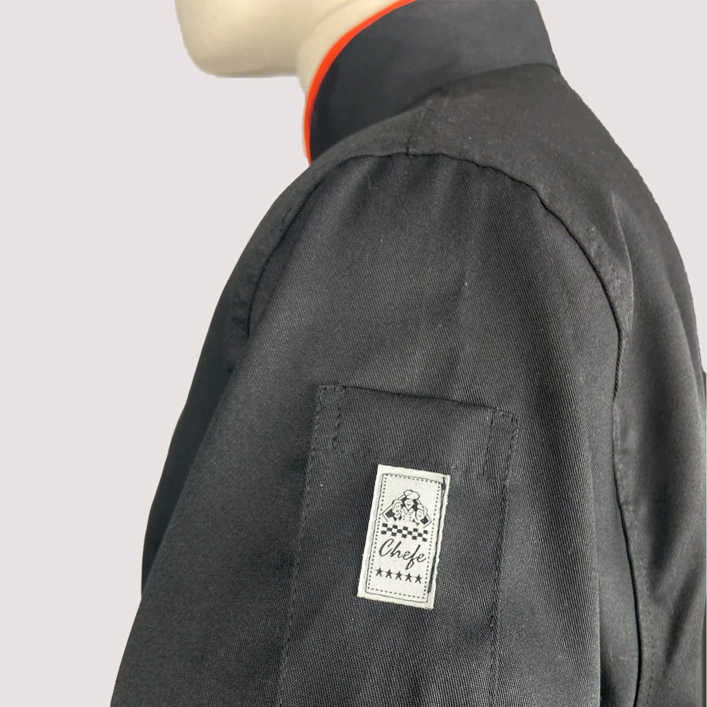 Dólmã brim manga longa com sutache fechamento em botão de pressão.