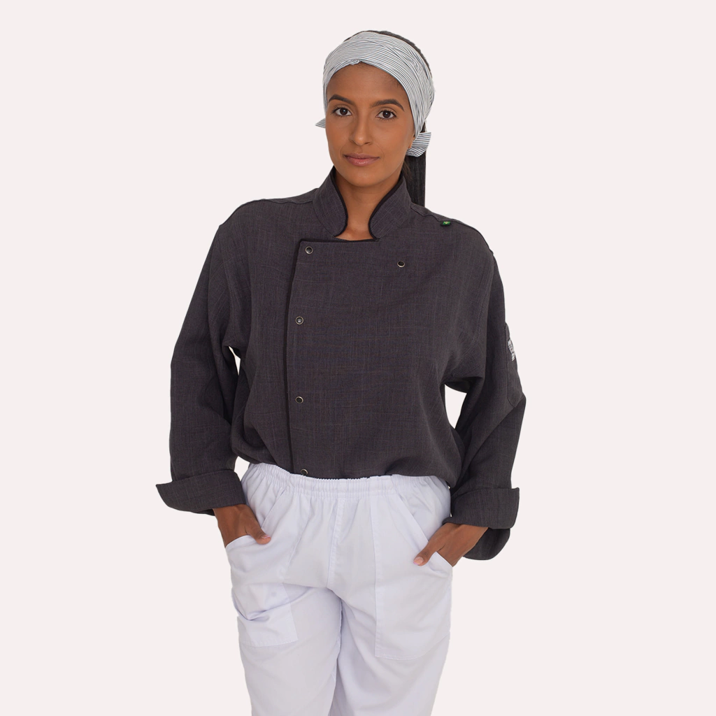 Dólmã Mescla Manga Longa com Botão de Pressão e Sutache Preto
