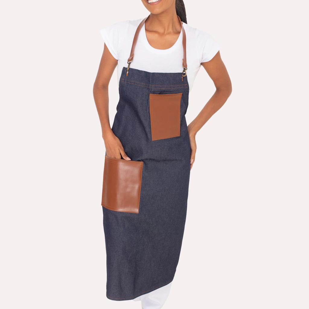 Avental Jeans de Peito com Bolsos em Couro – Estilo, Resistência e Funcionalidade!