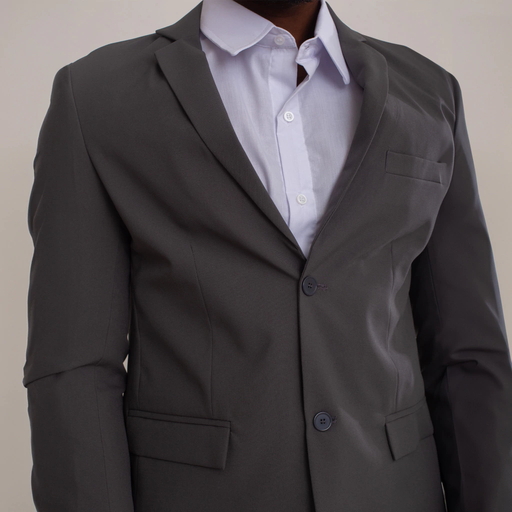 Terno masculino em oxford preto, composto por Paletó com 03 botões e calça social masculina com pregas.