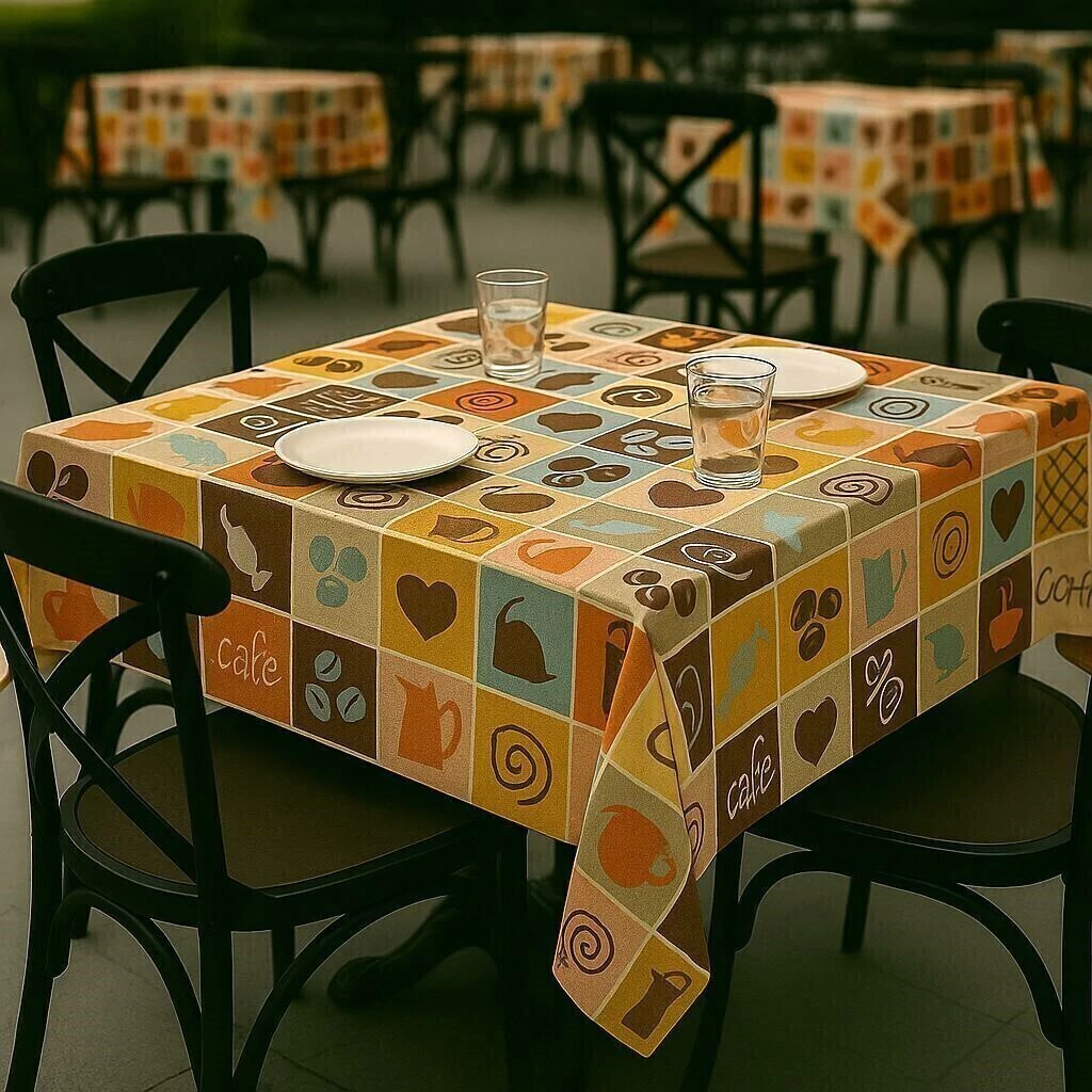Toalha de Mesa Café Amor Grãos 1,50x1,50 Quadrada